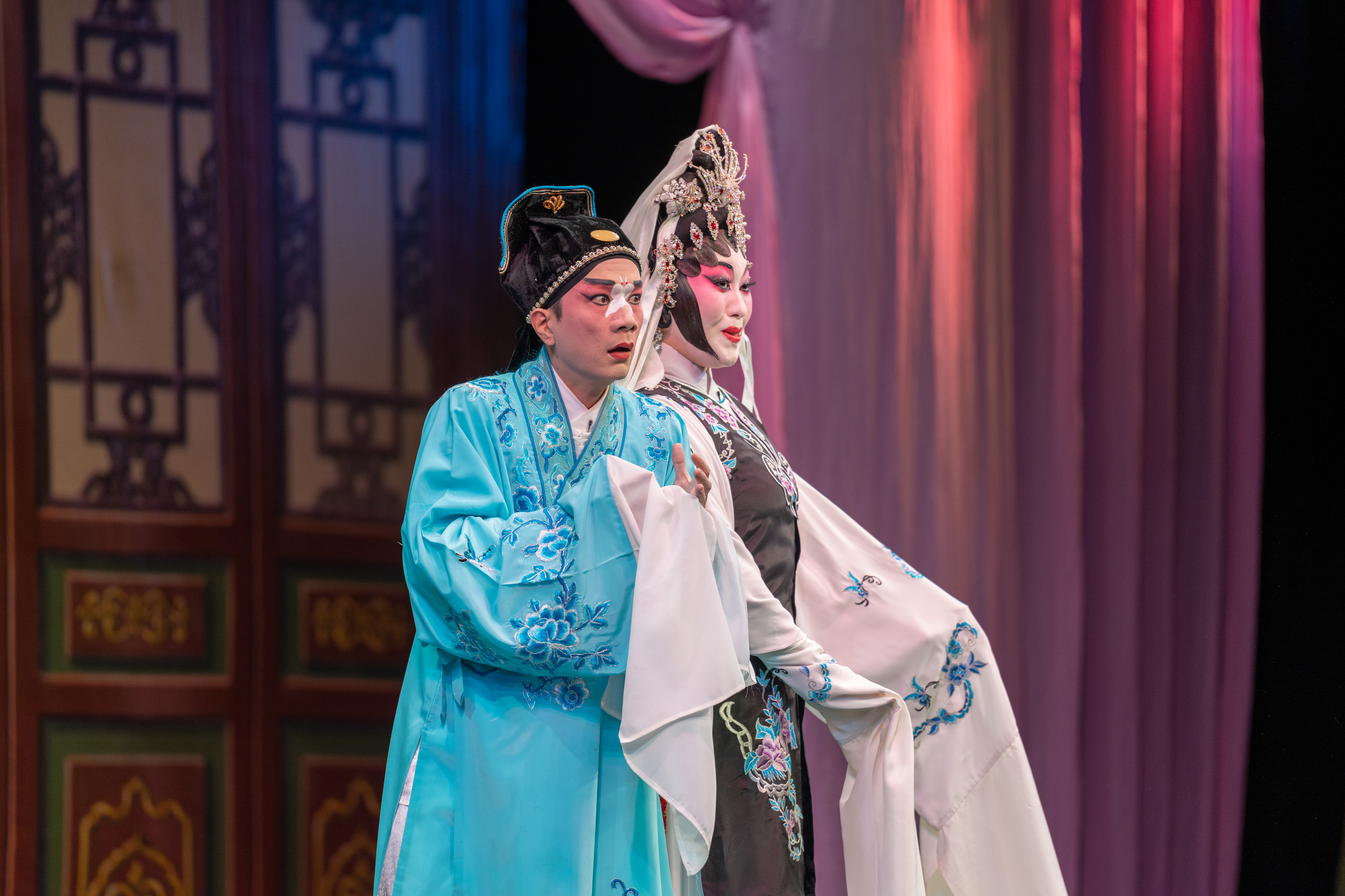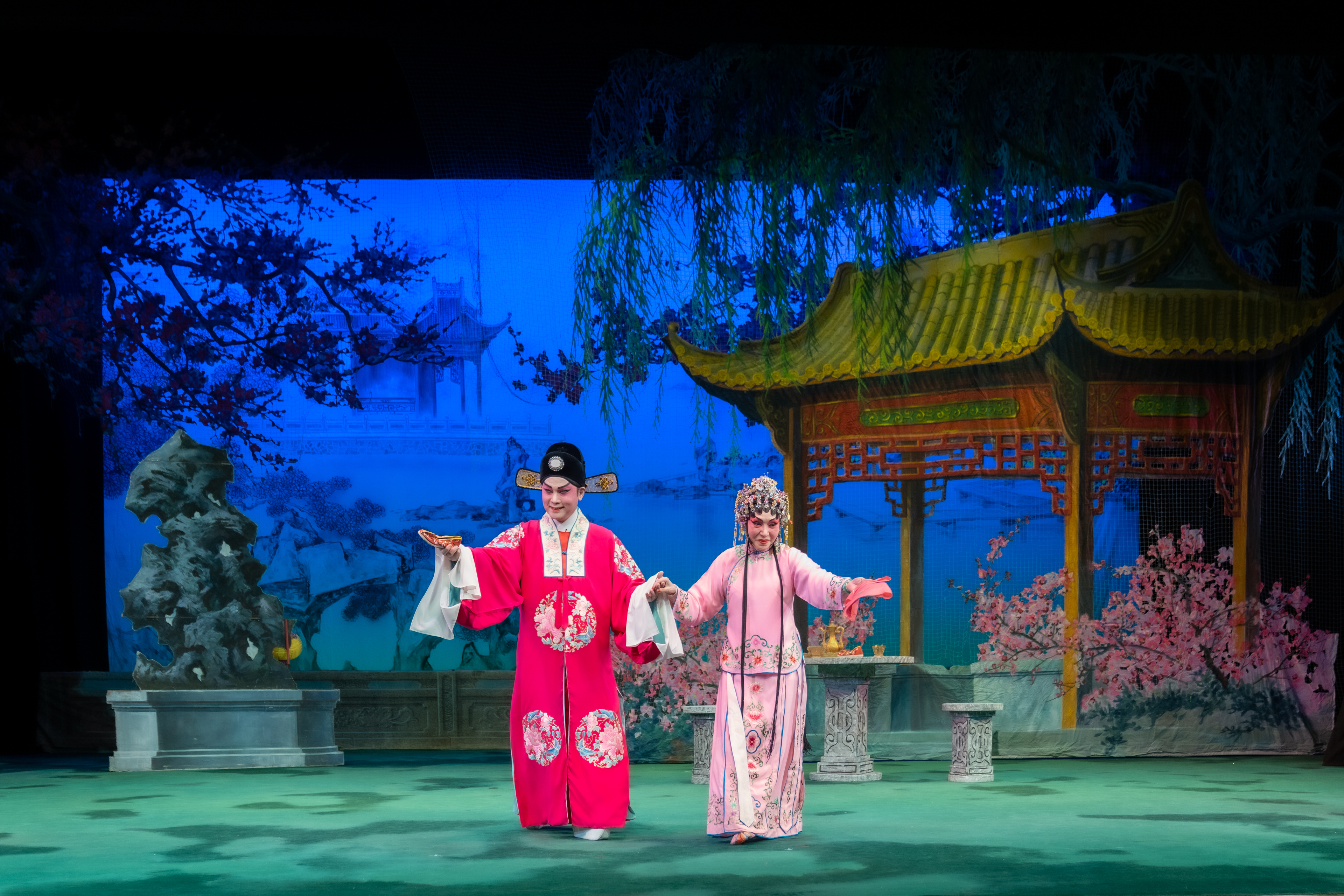 壓軸戲《對花鞋》,嬌俏的群姐遇上瀟灑又生鬼的旭哥,令整個劇院充滿了笑聲和掌聲。